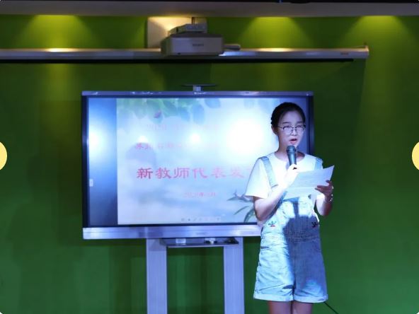 新教师代表周洁:非常荣幸能够来到石湖这个大家庭,认识这么多可敬可爱的老师们。未来的日子里,我将更坚定地向着这份伟大的职业而奋进。